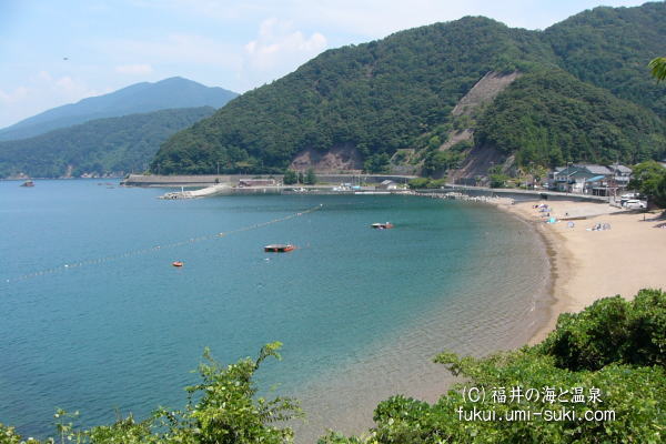 <犬熊(イヌクマ) 海水浴場 詳細> 162号線沿い、オレンジ色っぽい浜が目を引く海水浴行楽地です。浜は遠浅ではないので小さいお子さん連れは注意が必要です。 シュノーケルなどで少し潜ると小魚などが泳いでいるのが見えます。隣の阿納海水浴場に宿泊施設なども充実しています。 若狭のリアス海岸の海水浴場はシーズン中の休日は多くの人がやって来ますが、平日は意外と穴場です。道路向かいに駐車場も整備されています。