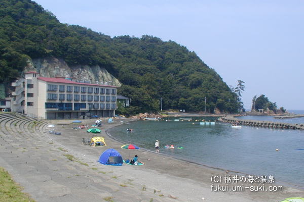 <久々子、松原 海水浴場 詳細> 福井県内でも古くからある歴史ある海水浴場です。手前側ホテルひろせさんの前辺りが久々子海水浴場。真ん中辺りが松原海水浴場となっています。 近辺には駐車場、徒歩範囲内に旅館や民宿なども多数あり、海水浴行楽地となっています。近場に売店が見当たらない為、食事や飲み物は持って行った方がよさそうです。