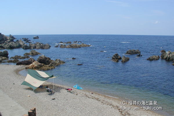 <くりや長須浜 海水浴場 詳細> 越前海岸にはいくつかの小さな海水浴場が点在していますが、その中でも比較的大きく、小石の浜と岩場のある海水浴場です。 この近辺の海水浴場の特徴ですが、ダイビングショップやダイバーが多いです。それだけ海の中の生物が豊富で透明度が高いという事ですね。普通に海水浴に行っても水中メガネは必需品です。