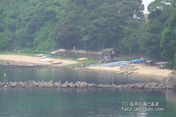 <杉津(スイヅ)海水浴場 詳細> 国道8号線からも見にくく廃屋の裏が入り口になっており、少し分かりづらいところにあります。 浜は小ぶりですが、海水浴のみならず、絶好の釣り場のようで、貸しボートに乗って釣りを楽しむ方も多いようです。人も少なく穴場的な海水浴場です。